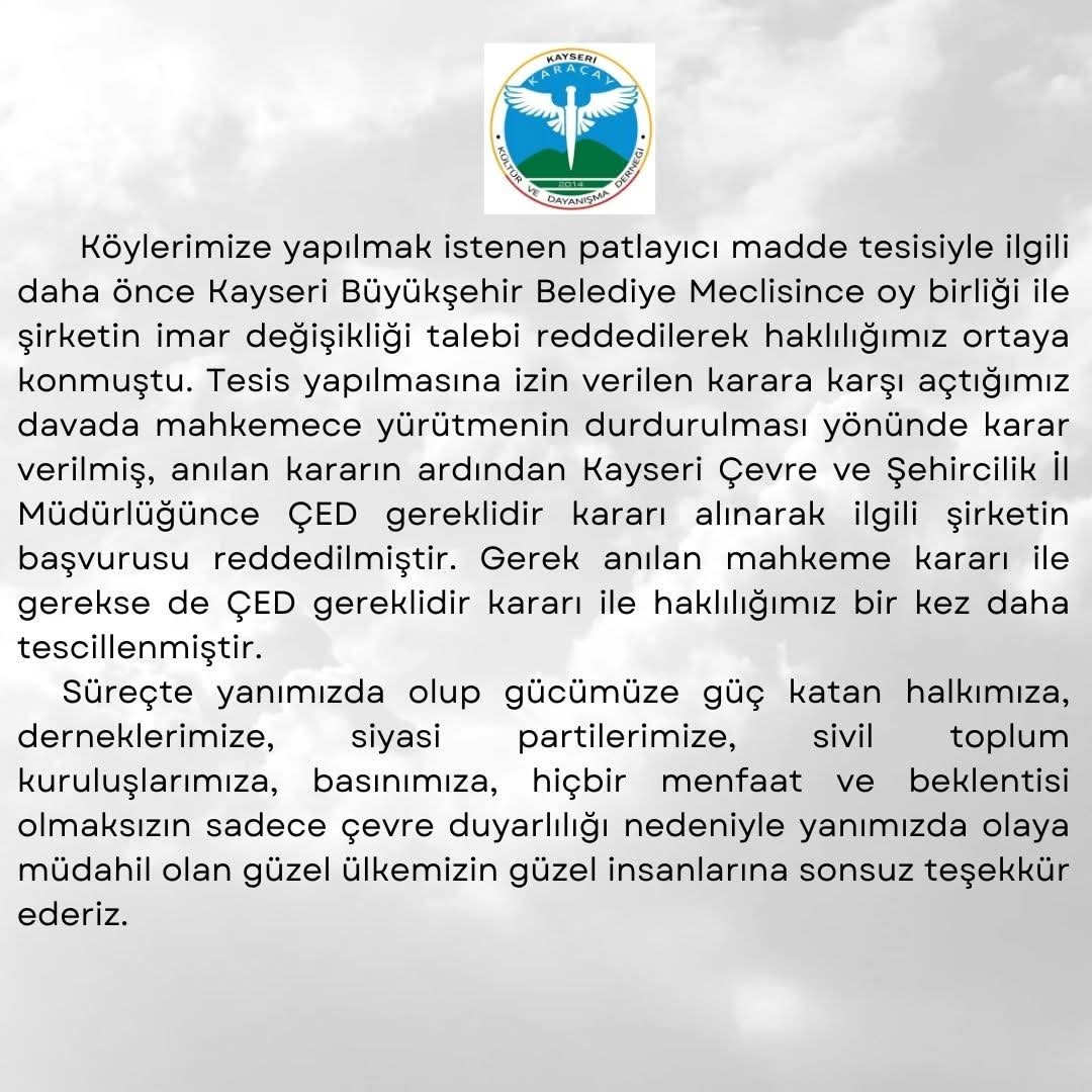 Eğri Söğüt ve Aşağı beyçayır köylerimizde yapımı planlanan dinamit fabrikası iptal edilmiştir.