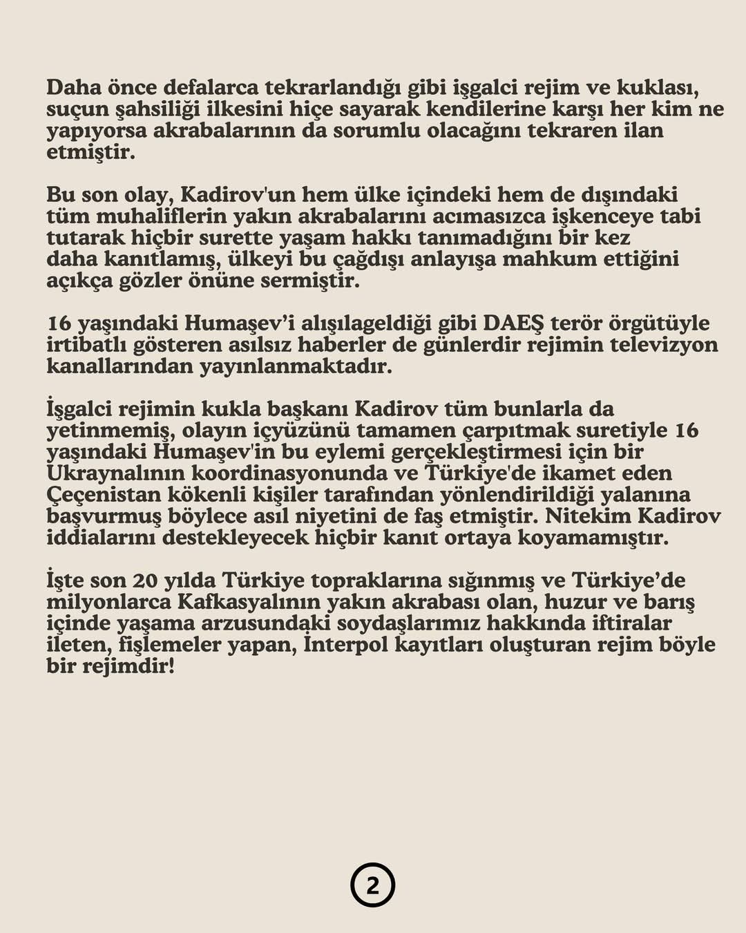 Halkını özgürlüğüne kavuşturmak için mücadele eden Şehit Cahar Dudayev, bundan tam 29 yıl önce, 21 Nisan 1996 tarihinde, kullandığı uydu telefonundan alınan sinyalle yeri tespit edilerek Rusya tarafından düzenlenen füze saldırısıyla şehit edildi.